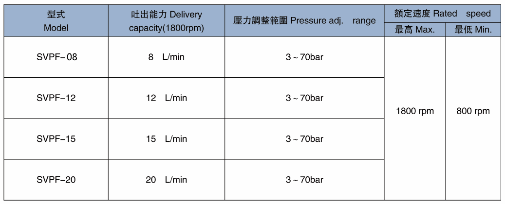 訂購:可變容量葉片泵SVPF-08、12、15、20